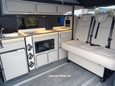 Inside the conversion, the Freedom introduces a brand-new layout designed exclusively for the T7. It features dimmable LED ambient lighting, a smart control panel with app access, wireless charging pad, and our new rail floor system fitted with the CamperKing deluxe ISOFIX 3 seat bed, offering exceptional comfort, safety and flexibility for travelling families. A 50-litre fridge freezer, induction hob, and leisure-grade microwave come as standard, supported by a 60-litre internal water tank with high-pressure rear activity hot shower.