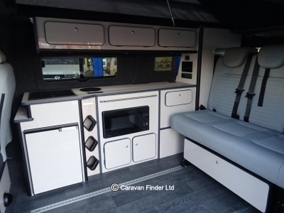 Inside the conversion, the Freedom introduces a brand-new layout designed exclusively for the T7. It features dimmable LED ambient lighting, a smart control panel with app access, wireless charging pad, and our new rail floor system fitted with the CamperKing deluxe ISOFIX 3 seat bed, offering exceptional comfort, safety and flexibility for travelling families. A 50-litre fridge freezer, induction hob, and leisure-grade microwave come as standard, supported by a 60-litre internal water tank with high-pressure rear activity hot shower.